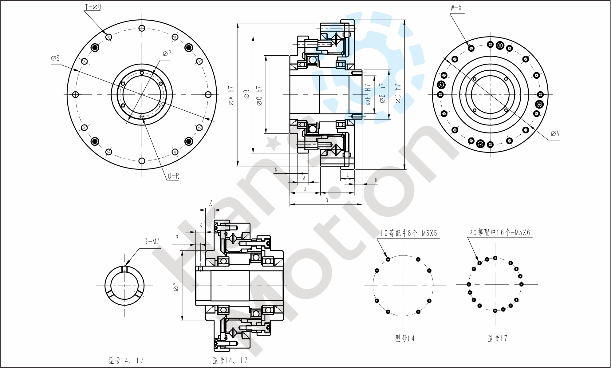 HMHG-Ⅰ系列柔輪為中空翻邊形標(biāo)準(zhǔn)結(jié)構(gòu),波發(fā)生器凸輪中部有大口徑中空軸孔,減速器內(nèi)部設(shè)計有支撐軸承,全密封結(jié)構(gòu),安裝簡便,非常適合于需從減速器中心穿線的場合使用產(chǎn)品特點(diǎn)